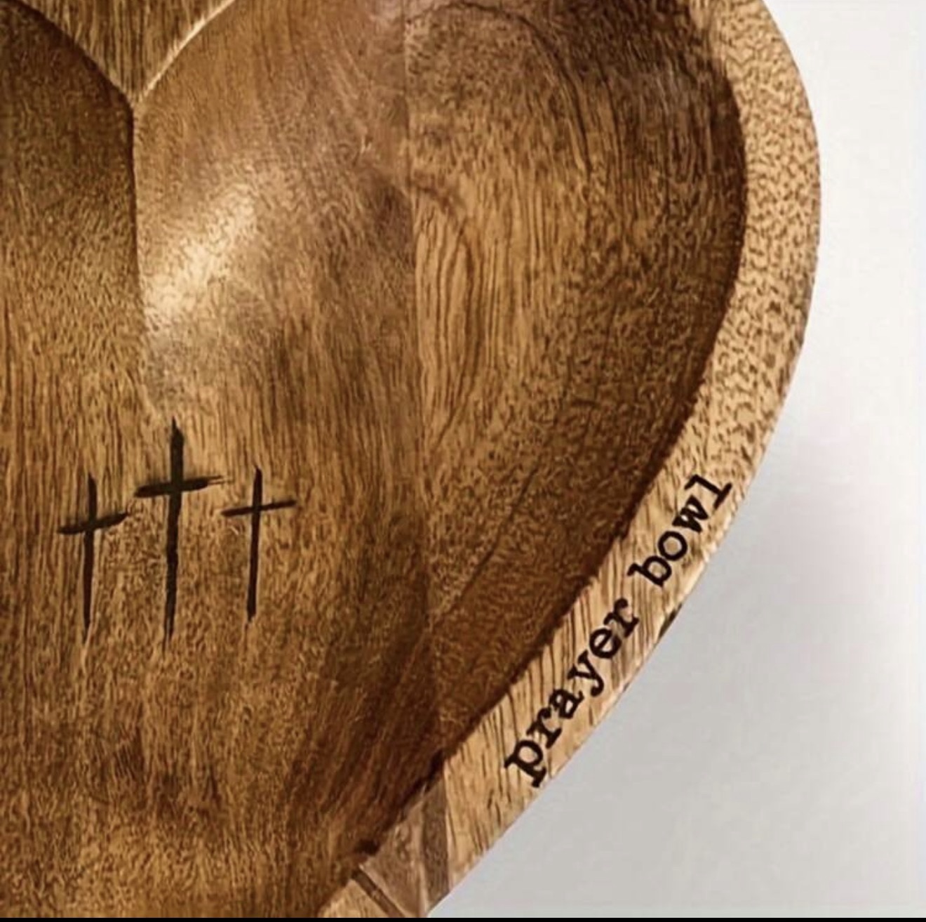 This beautifully crafted wooden heart bowl features three crosses, symbolising faith, hope, and love. Perfect for creating a quiet moment with God, this bowl can be used to hold written prayers, gratitude notes, or special intentions close to your heart.