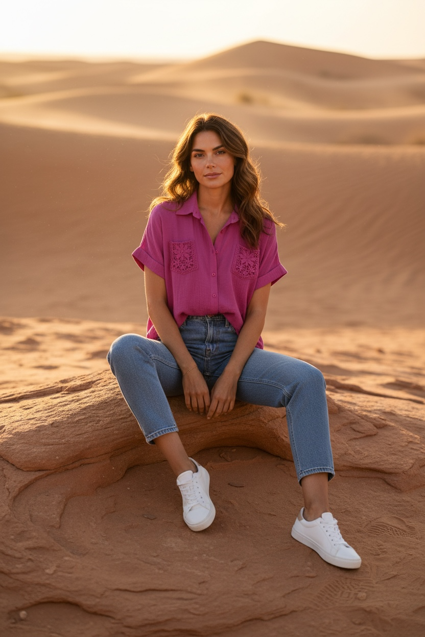 35% Cotton Blend | Lace Pocket Detail | Relaxed Fit